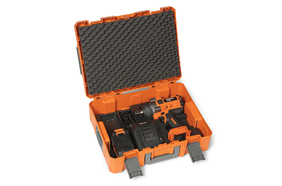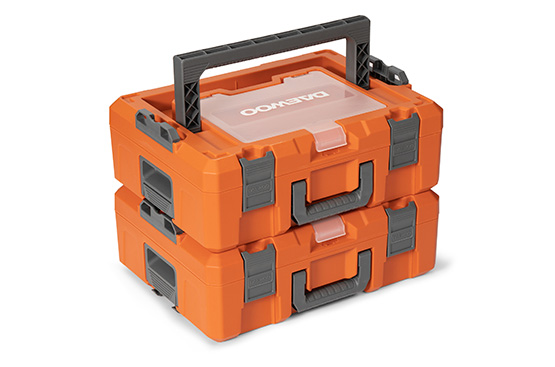 Кейс выполнен из прочного пластика в виде систейнера с замками, обеспечивающими быструю и надежную установку кейсов один над другим, что облегчает транспортировку и способствует экономии пространства для хранения.
